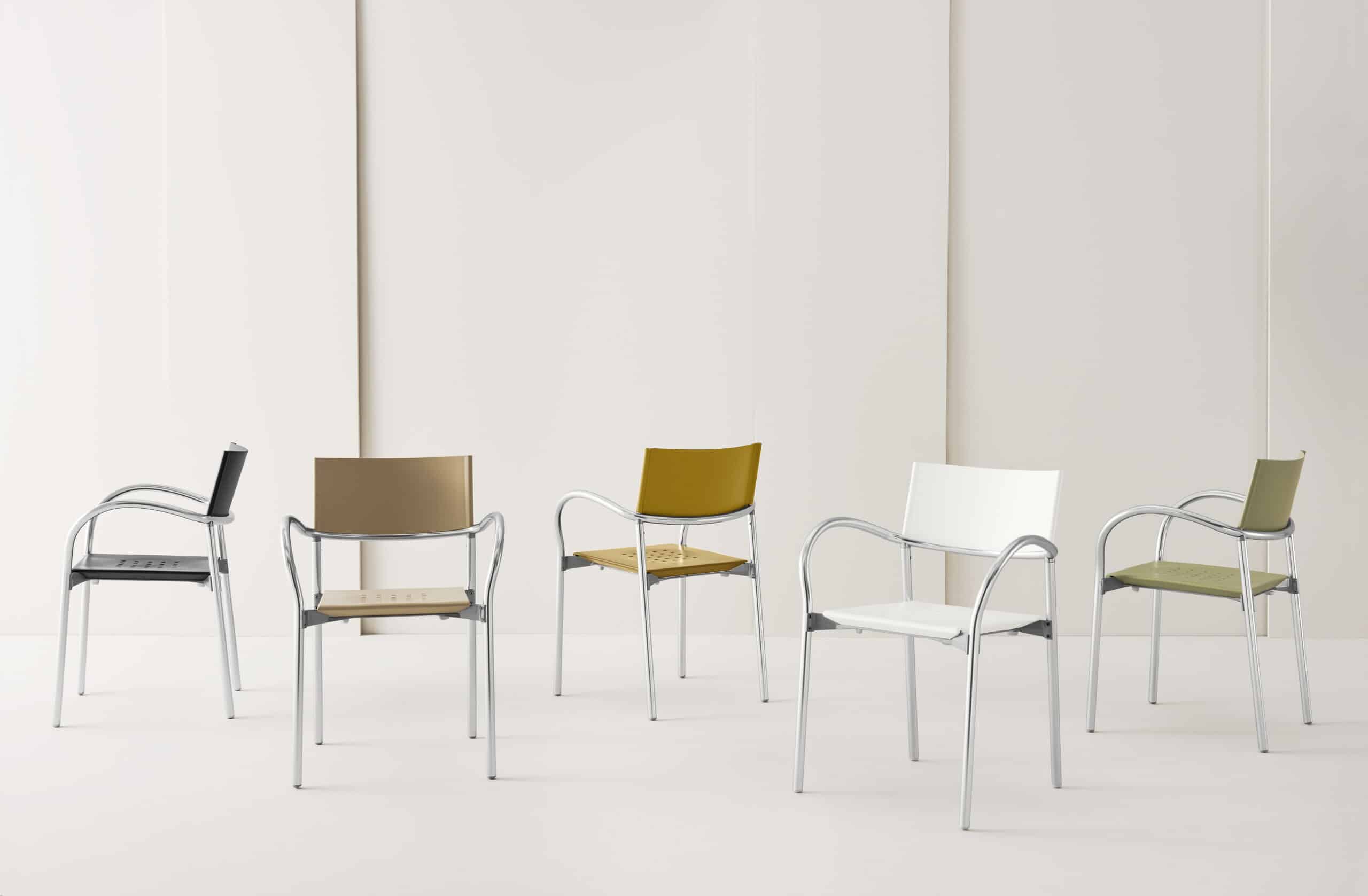 6 definitive stamps from the “Italian Design” thematic series. Issued March 9, 2020. BREEZE armchair designed by CARLO BARTOLI for Segis, 1995: aluminum frame, polypropylene seat and backrest