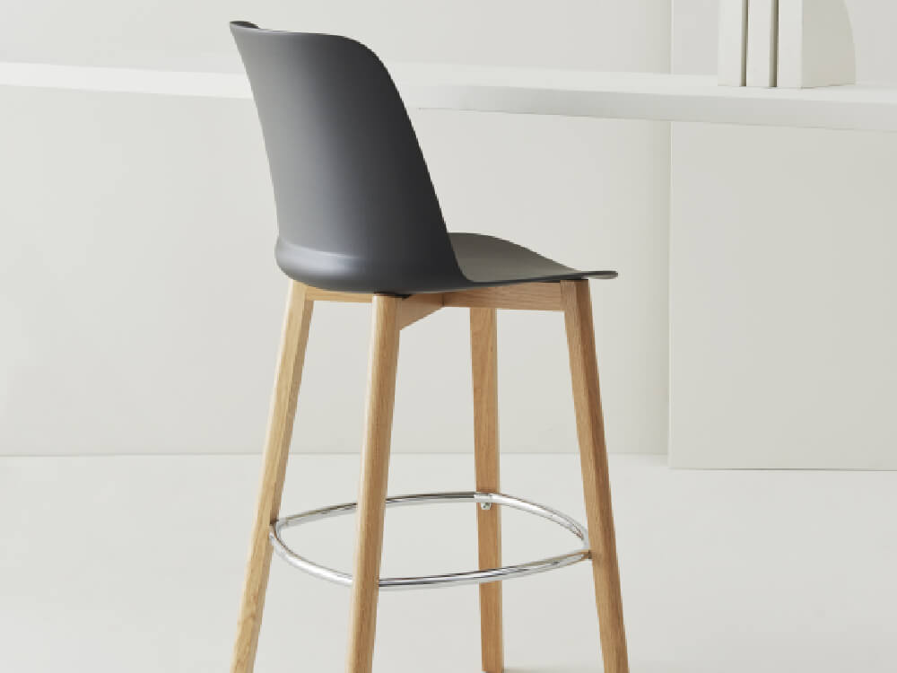 Upholstered options: polypropylene shell with frontal upholstery or seat cushion only, or fully upholstered in fabric, faux-leather or COM Legs. solid oak.